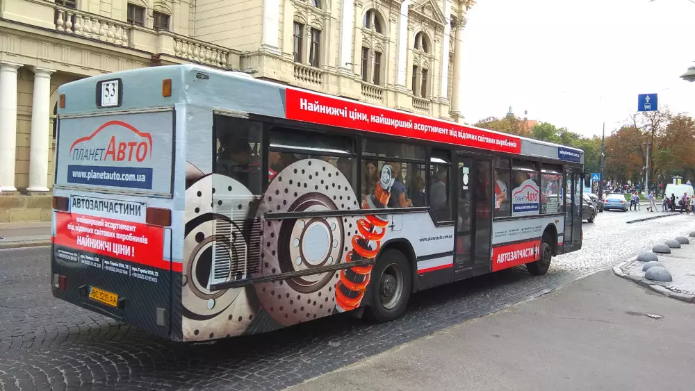 1. Транспорт, который постоянно в движении. Чтобы прочитать объявление в газете, нужно ждать, пока потенциальный клиент её купит или потратит деньги на интернет. Слишком долго, правда? А вот массивное изображение на бортах движущегося автобуса сработает сразу, как только появится на улицах города.